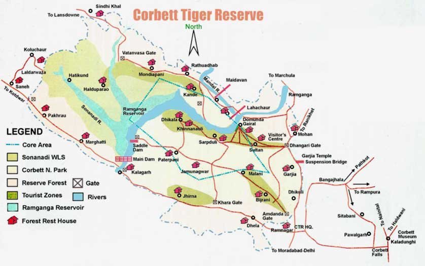 Jim Corbett National Park, located in Uttarakhand, India, lies in the foothills of the Himalayas, covering parts of Nainital and Pauri Garhwal districts. It is bordered by the Ramganga River and contains a mix of dense forests, grasslands, and riverine ecosystems. The park is divided into several zones, including core, buffer, and tourism areas, supporting rich biodiversity and tiger habitats. Its strategic location connects northern and central Indian wildlife corridors, making it crucial for conservation and ecological monitoring.